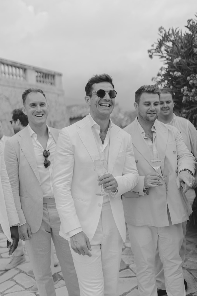 A little swagger, a little laughter and that inevitable moment someone fixes a crooked tie. They look sharp without trying too hard and the energy is always relaxed. It is an unexpectedly great portrait of the day.