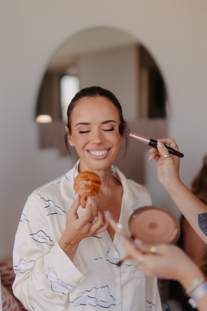 That soft, slightly chaotic hour where everyone is buzzing, half ready and completely excited. It is the moment the day truly begins, filled with borrowed lipsticks, steaming dresses and final touch ups. Calm meets anticipation in the prettiest way.