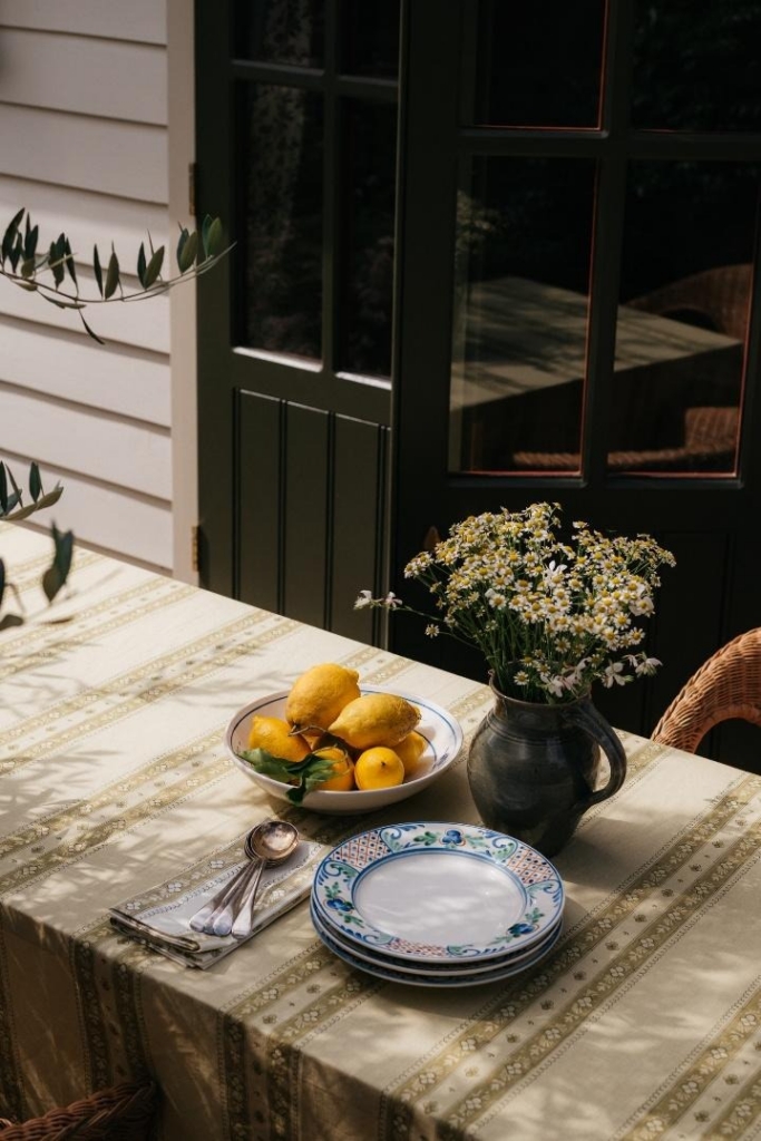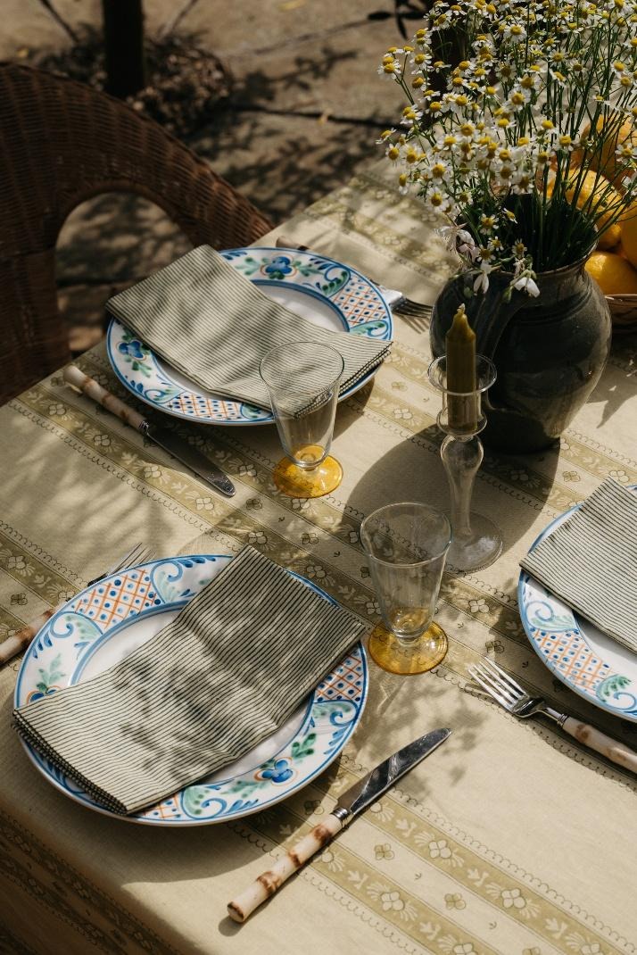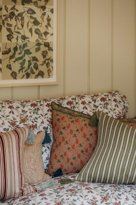 Handcrafted soft furnishings, linens and ceramics. Our fabrics are hand block printed and woven and the ceramics are hand-painted, each made by masters in their craft. I wanted to create a collection that didn’t necessarily have to perfectly match, but could be mixed effortlessly at home.