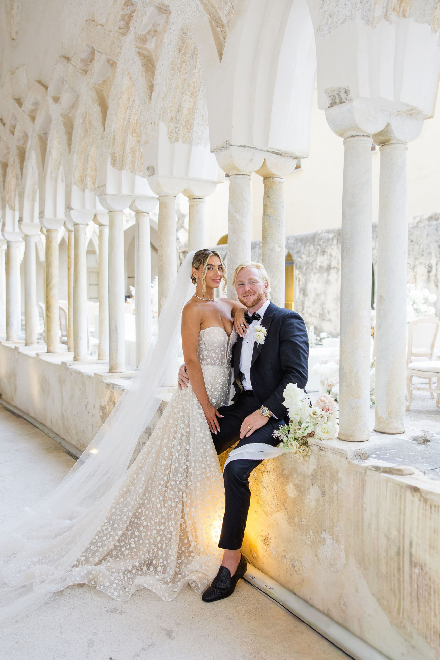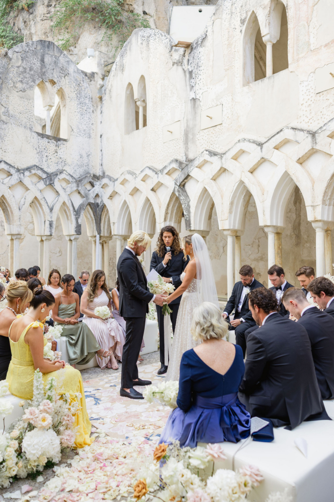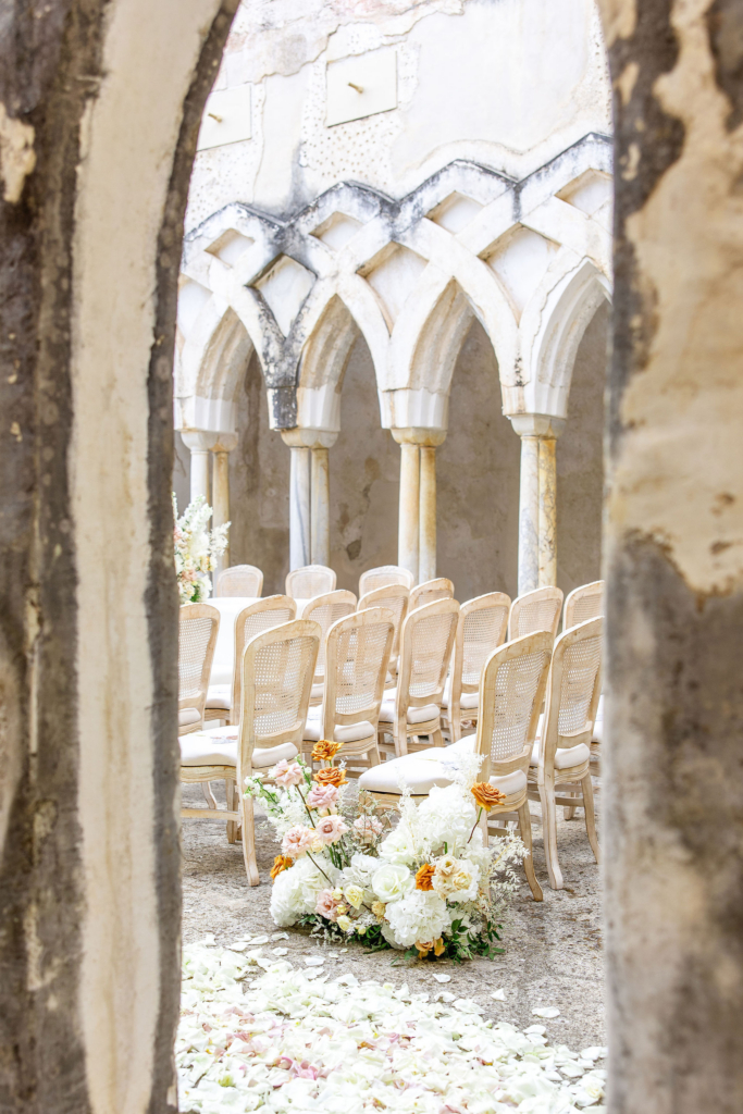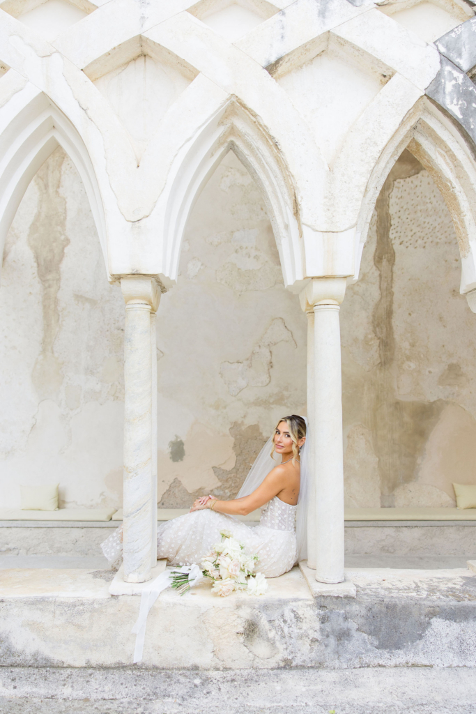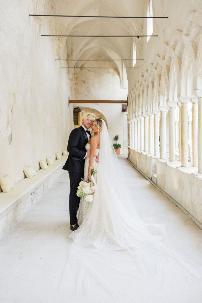 We married at the Anantara Convento di Amalfi on 20th August 2025 – one of the most breathtaking Amalfi Coast wedding venues. It is a former convent built into the cliffs, with stone cloisters, panoramic views over the Mediterranean and a stillness that modern hotels simply cannot manufacture. It had true Italian charm.