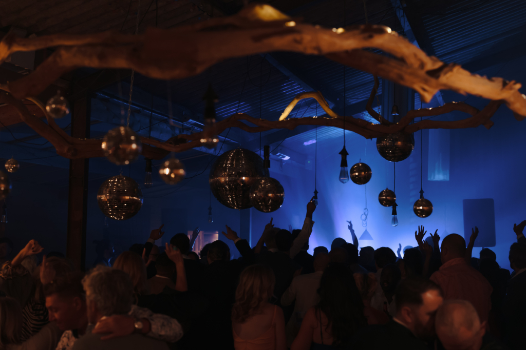 We had different coloured glassware, vases and candles, lots of disco balls – we wanted a party feel rather than anything too formal; after all, it was a celebration of our love for each other. Like many, we love Glastonbury – it’s where Aidan first told me he loved me, so we used all the stage names for our table names, with the family in the Healing Fields and our naughty friends in the South Eastern Corner.