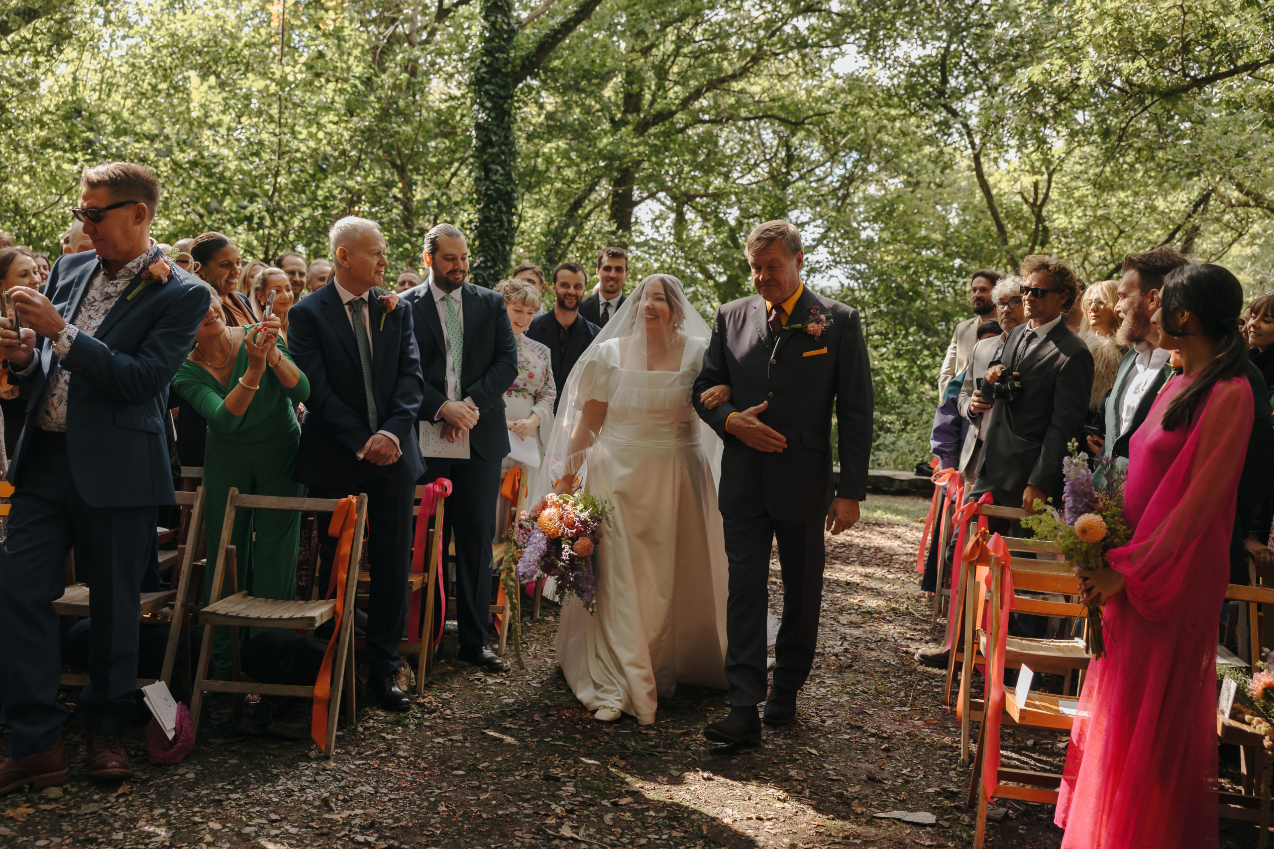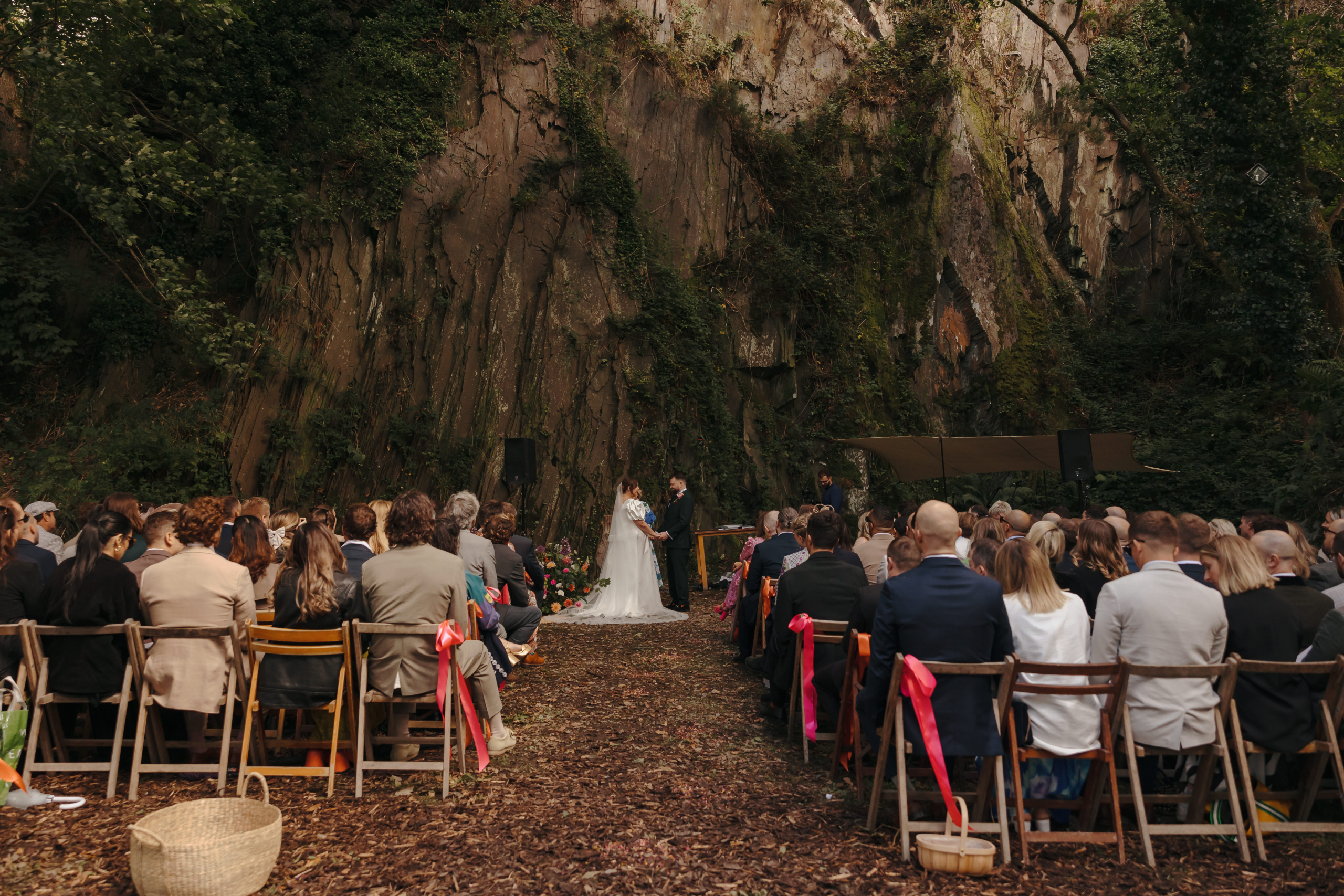 We got married in the quarry; which is a dramatic slate back drop. We wanted a real festival feel with our friends around us, and Fforest really fulfilled that dream. It has a little onsite pub (Y Bwthyn), which meant it was sold at first sight when Aidan saw it.
