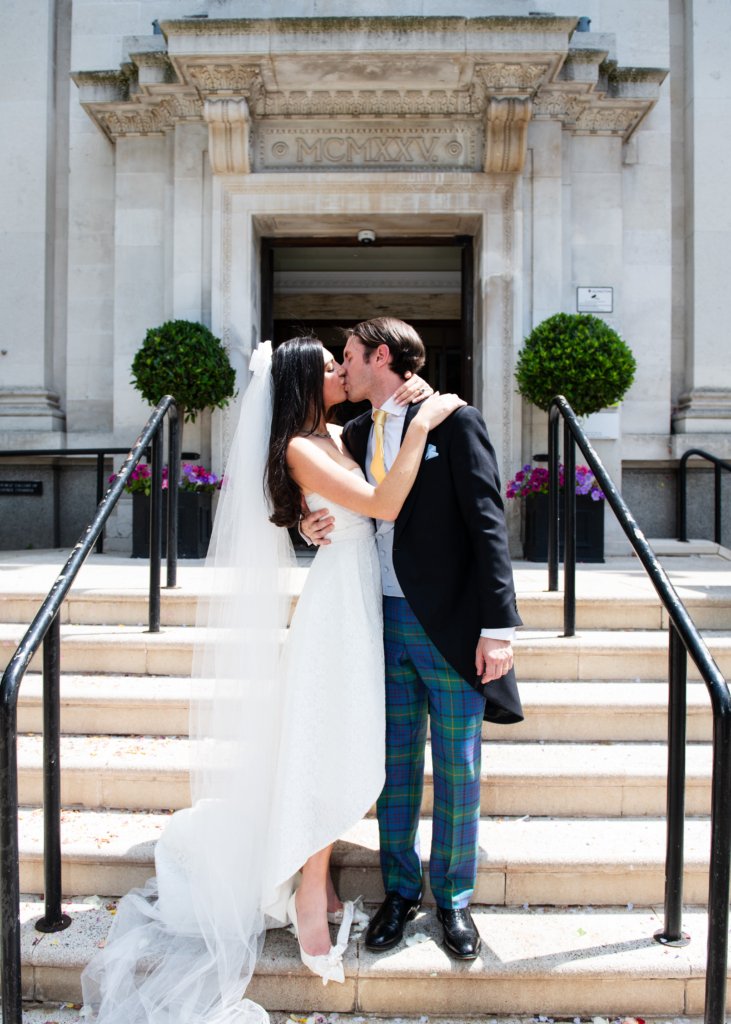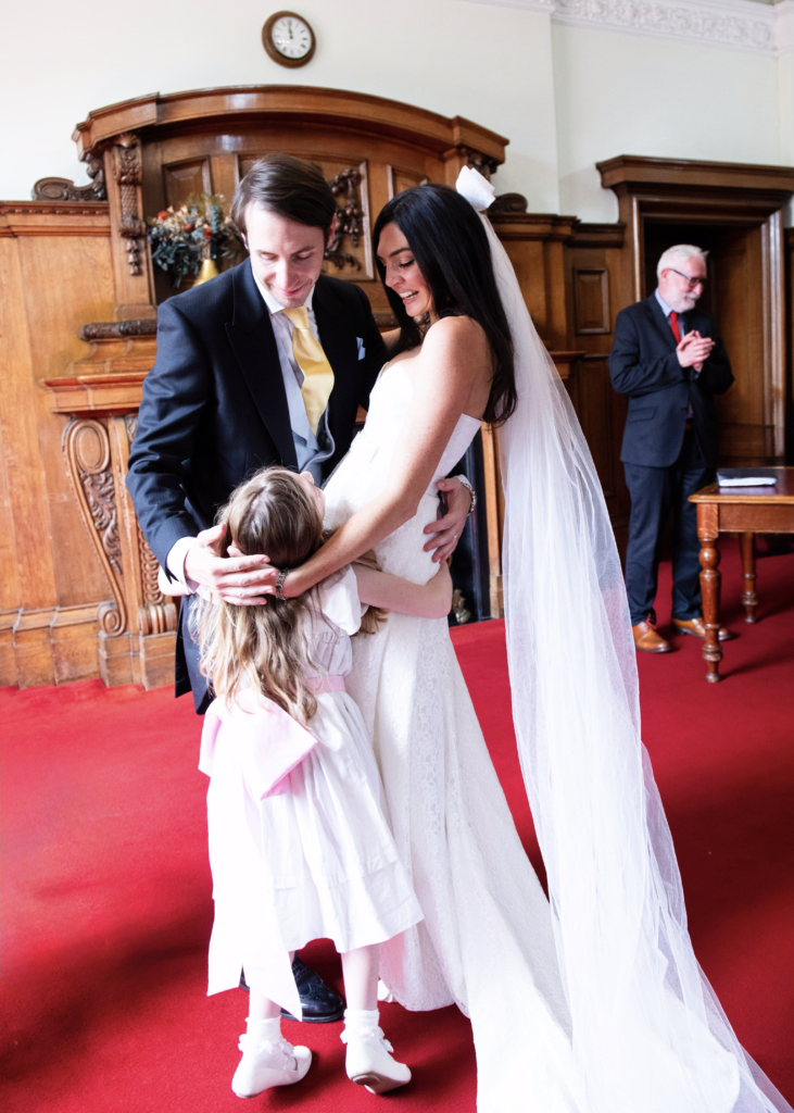 It was a very intimate affair as we plan to celebrate with all of our friends and family abroad. We got married at Islington Town Hall and held our after at Langans, Mayfair. Rory is from Islington, and we have a place there however, we now live mostly in Stamford, Lincolnshire so to be able to come back to Islington was very meaningful to Rory. We will be having our wedding celebrations in the French Alps, surrounded by our family and friends. (Our daughter Arabella suggested we ski down the mountain in our wedding attire – which was hope to do! )