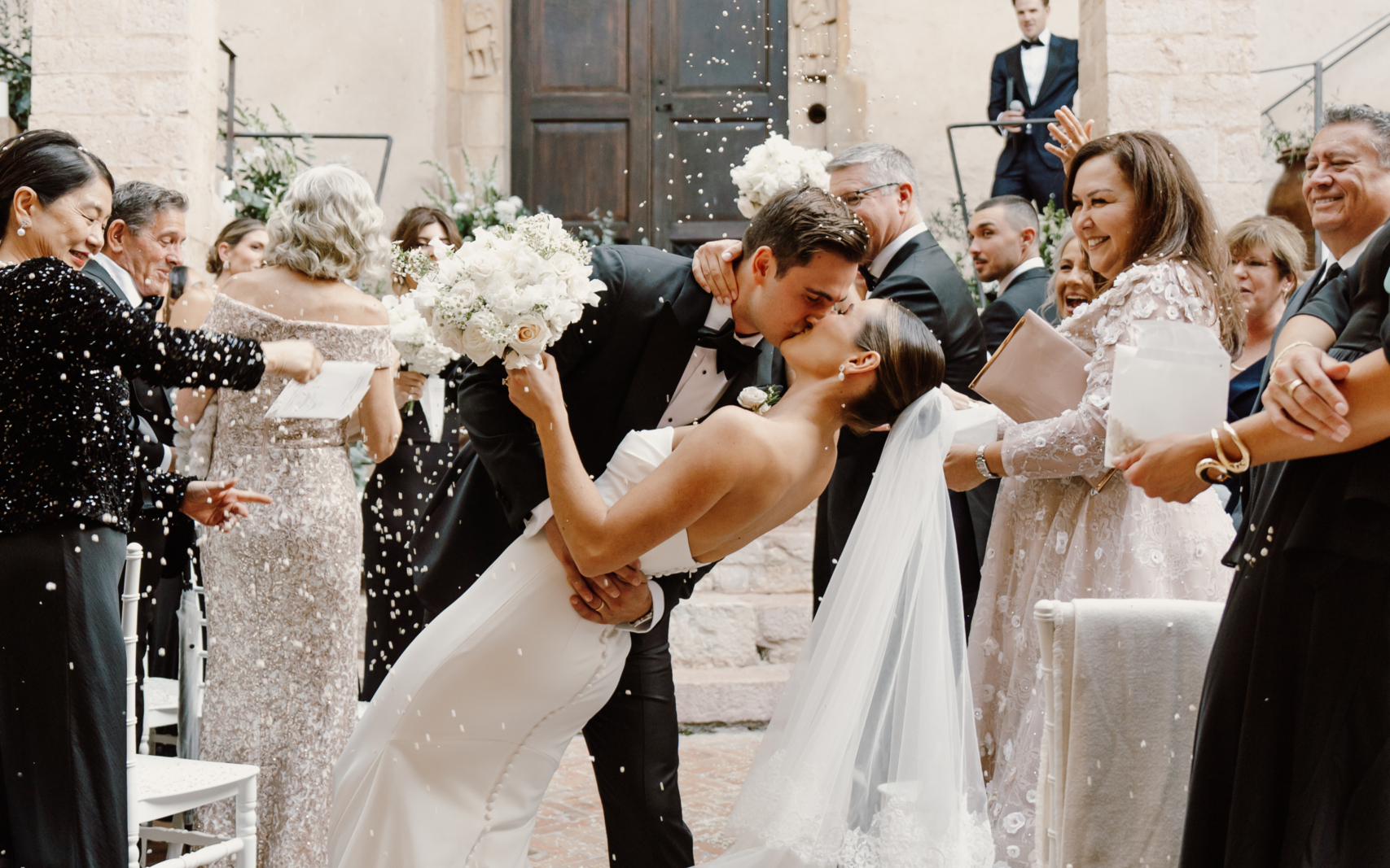 From a chance encounter outside an ice cream shop to exchanging vows in a 12th-century monastery tucked into the Umbrian hills, step inside Jaclyn and John Rea’s romantic Italian wedding – a celebration where timeless elegance met meaningful intention in the heart of the countryside.