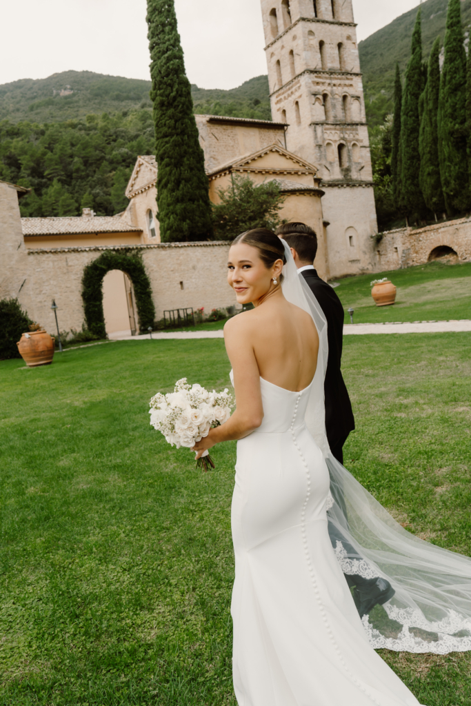 We were married at Abbazia San Pietro in Valle, a 12th-century monastery nestled in the rustic Umbrian countryside, just a few hours outside Rome. The property is steeped in history and charm, with beauty tucked into every corner.