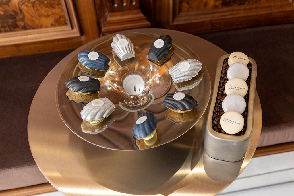 Production by Planned 2 Perfection ensured the lighting cast a warm glow against the boutique’s wooden panelling. Florals by Kuit Design were sculptural and tonal, with sprigs of mimosa dotted throughout – a nod to the flower as an emblem of International Woman’s Day – allowing the indigo bottles to remain centre stage.