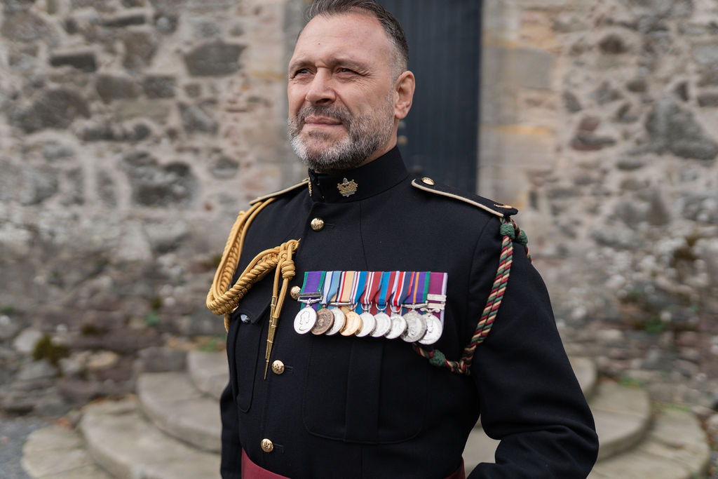 Karl was always going to wear military uniform, but he wanted his groomsmen in traditional kilts.
