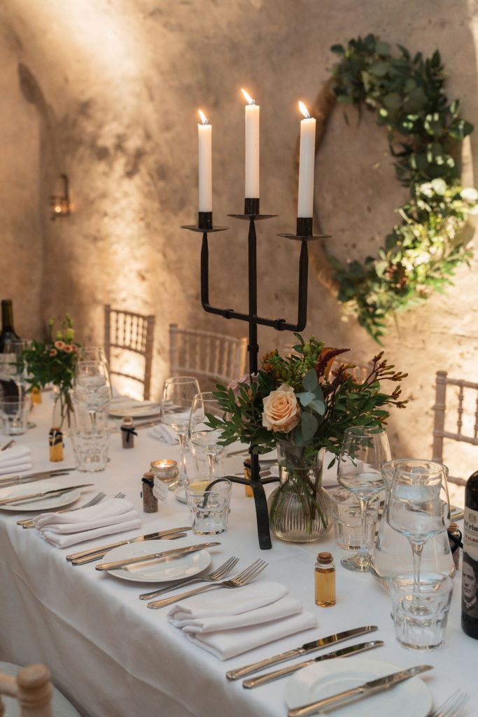 For favours and place settings, we made personalised mini bottles of whisky for the men, heather for the women and sweets for the children. The castle events team decorated the tables beautifully with flowers and candles.