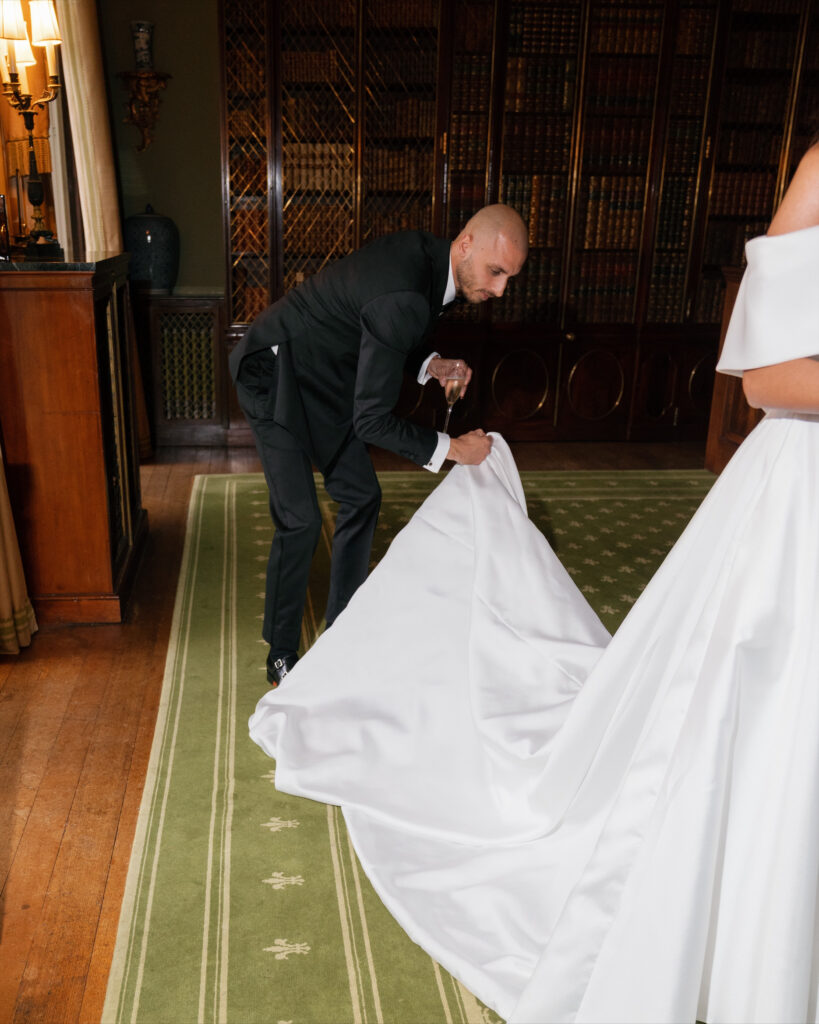 Michaela Selene was my makeup artist, and Grace Bailey did my hair. I kept my makeup quite soft and natural but went big and bouncy for my hair. I was heavily inspired by that classic “old money” style, which felt perfect for the grand setting of the venue.
