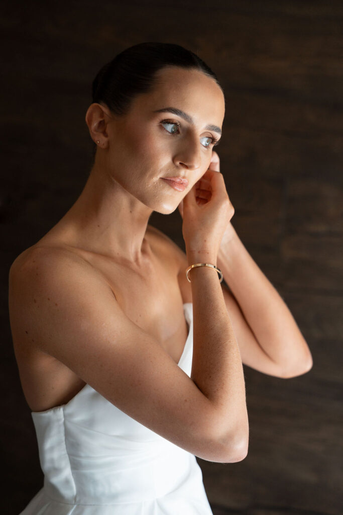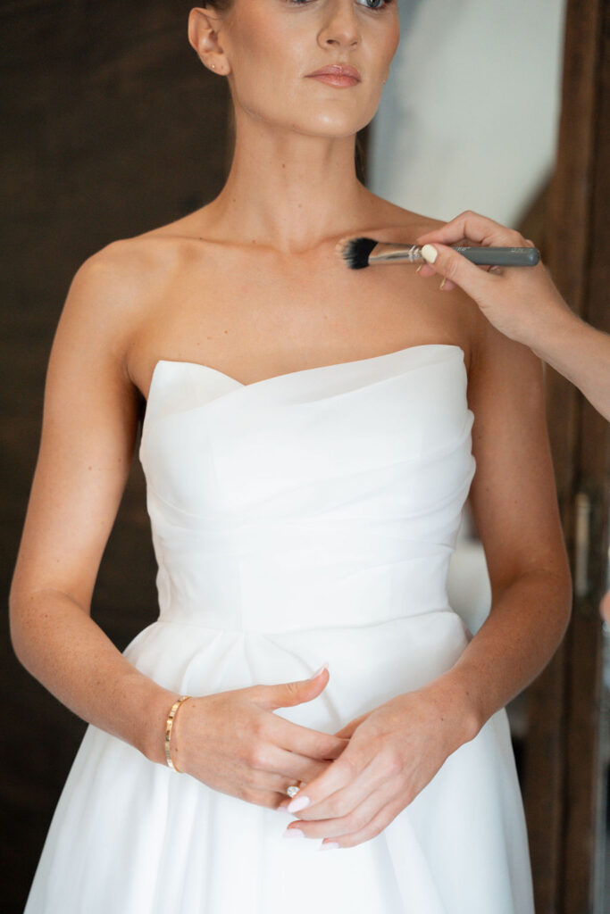 I had MediSkin facials for six months before the wedding to make my skin glow. I chose the Ultimate relaxation ones with LED. My makeup on the day was by Zoe Kennedy with hair by Timea Breban. I just wanted a slick, neat bun that was elegant. Timea was so thorough. The hair trial was three hours! She tried so many different versions on me. And I would have changed the wedding date to ensure I got Zoe for my make-up. She’s done friends’ weddings, so I knew how good she is. She gave me a perfect ethereal bridal look, and I still use the NARS foundation she introduced me to and the Charlotte Tilbury Dance Floor Princess lipstick.