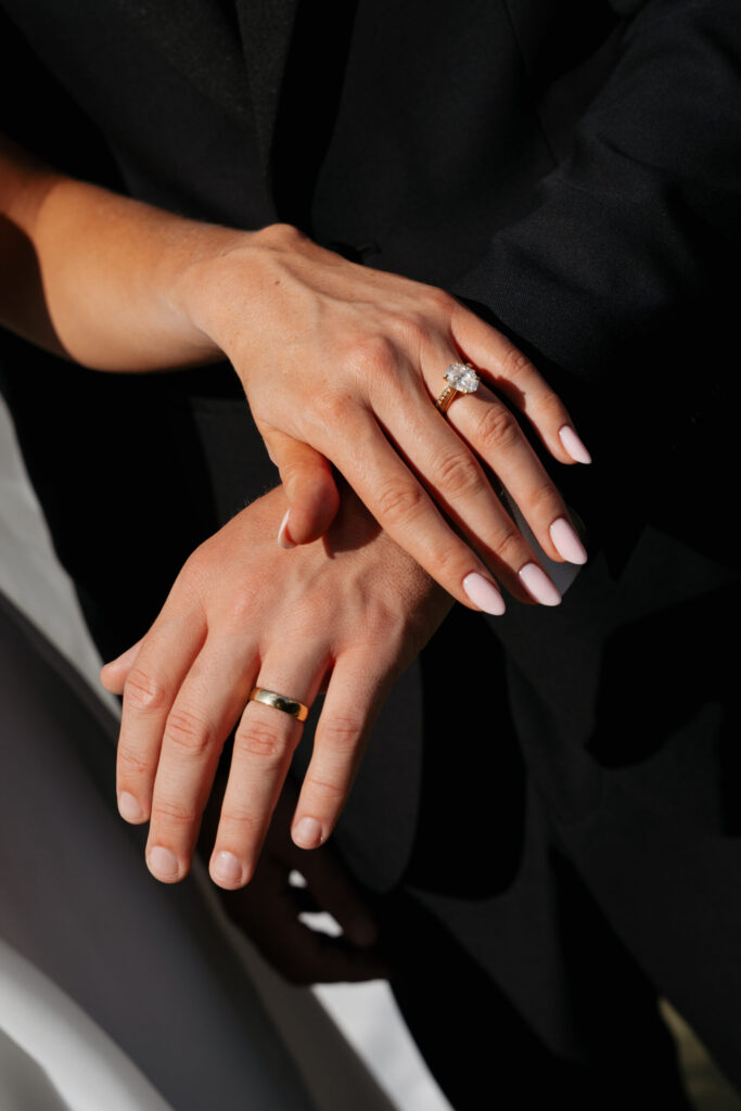 The ring was from Queensmith in Hatton Garden, a gold band with an oval diamond. I’d sent him pictures about two years before of the exact ring I wanted for ‘when the time comes’. He did very well! I was too shocked to cry. We started telling everyone and then hopped in the hot tub with some Champagne.