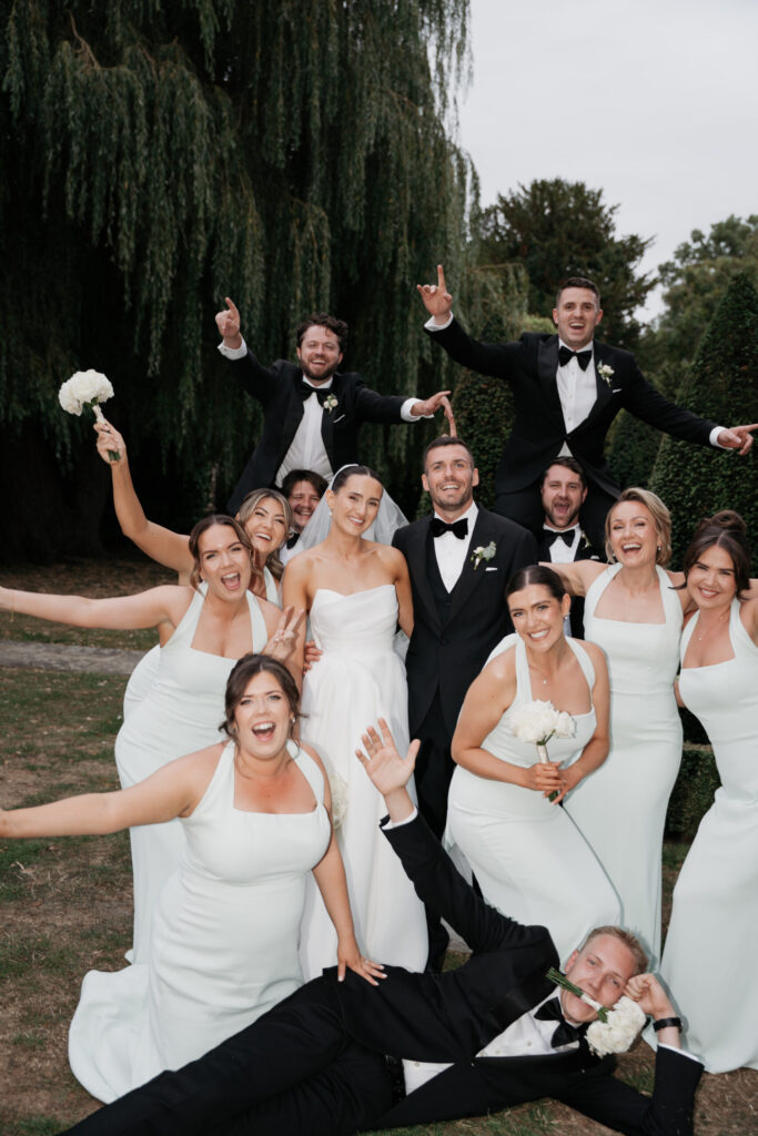 My six bridesmaids wore the same halterneck dress in a soft mint colour from Odd Muse and I was more than happy for mum to wear white from Hobbs. Jack wore black tie from Charles Tyrwhitt and his groomsmen’s suits were hired from Moss Bros.