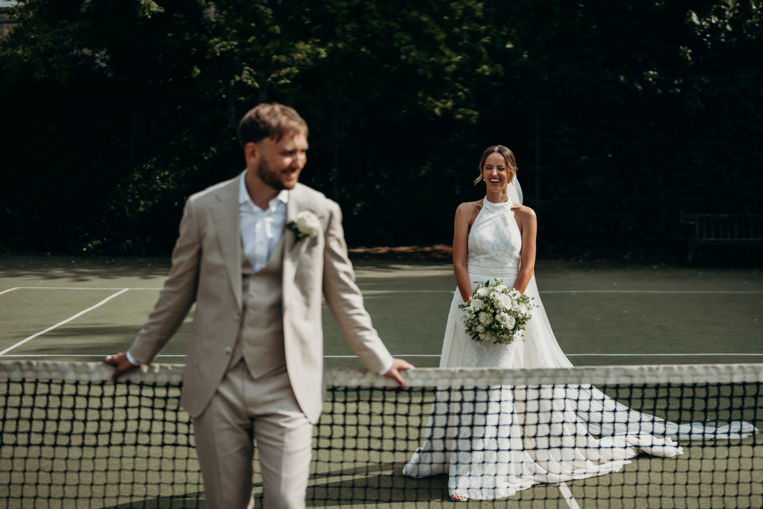 We aren’t overly formal people, so a barn wedding felt like a less traditional choice for us. Tythe was the second venue we visited, and we cancelled all the others after seeing it. We’d fallen in love with the setting. James adores tennis so the fact they have a court was a huge sell for us. He spent the wedding morning playing with all his groomsmen. We were only considering a one-night wedding, but after seeing the family farmhouse there was no way we couldn’t book two nights. Staying also meant we didn’t have any extra transport costs. There were 19 of us round the farmhouse table for dinner the evening before, a delicious fish pie with garlic bread, veggies and a giant passionfruit pavlova for dessert.