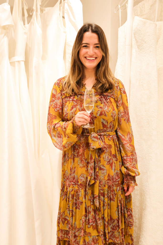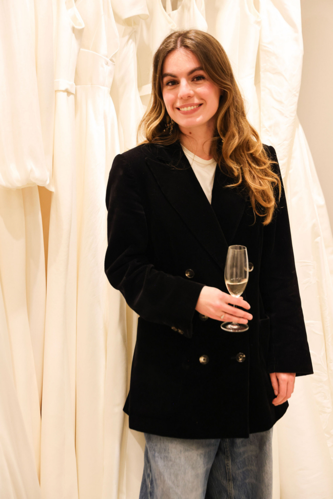 As the evening drew to a close, guests lingered among the rails, champagne in hand, reluctant to leave the calm of the studio. It felt less like an event and more like a reminder of how bridal style should feel. Unrushed, personal and quietly joyful.