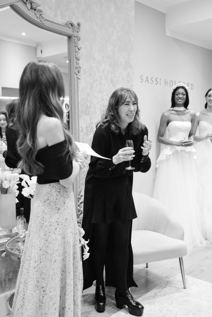 A highlight of the night came in the form of an intimate conversation led by The Wedding Edition’s editor and beauty editor & bride-to-be, Yasmin Salmon, who sat down with Sassi to explore the questions brides often carry quietly. Where to begin when choice feels overwhelming. How to select a gown that will still feel right decades from now. And how to reassure brides who feel nervous at their very first appointment. Sassi’s answers were thoughtful, calm and grounded, rooted in emotion, proportion and the belief that confidence is always the most beautiful thing a bride can wear.