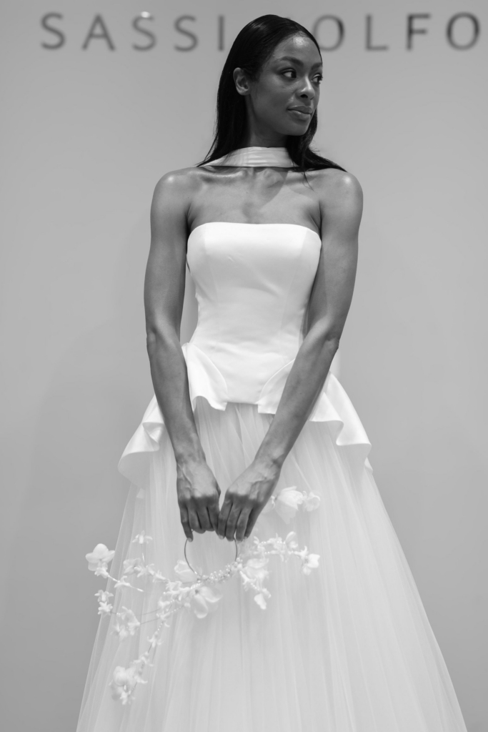 Alongside the bridal gowns, Sassi’s mother of the bride pieces drew just as much attention. Elegant tailoring, softly draped eveningwear and modern proportions proved that dressing for the wedding day can feel polished and contemporary without tipping into formality. It was a thoughtful reminder that style on the day extends far beyond the bride alone.