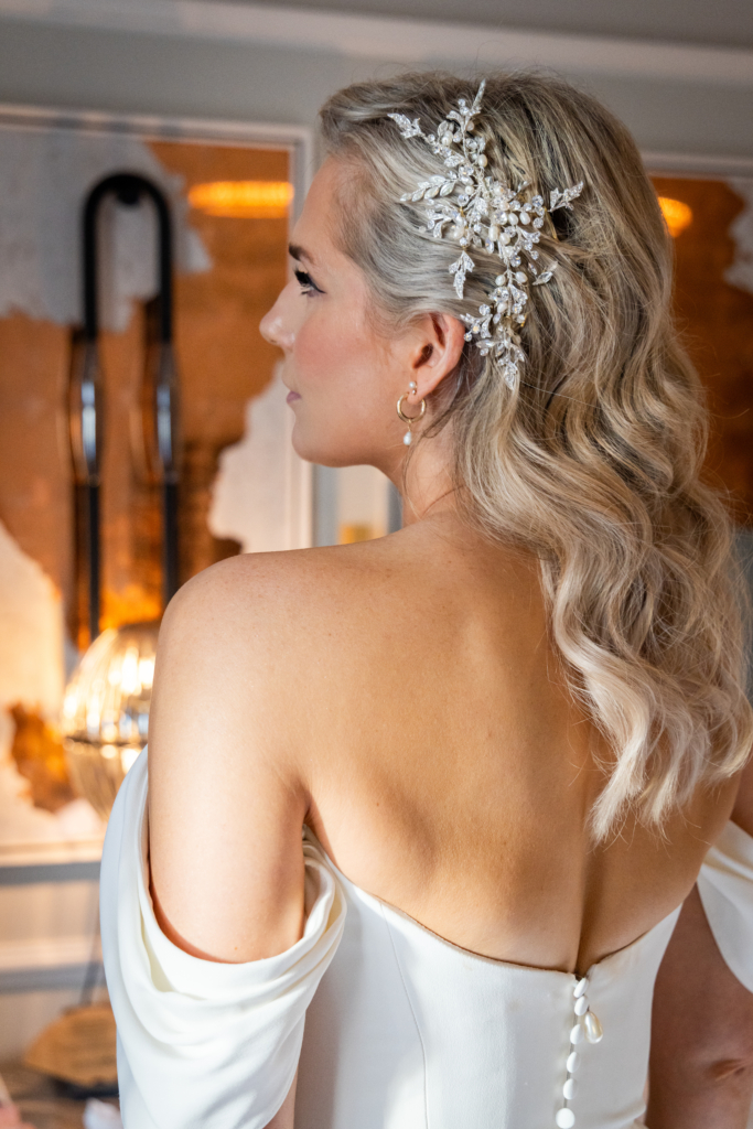 I wore Percy Langley earrings and a Rosa Clara hair slide.