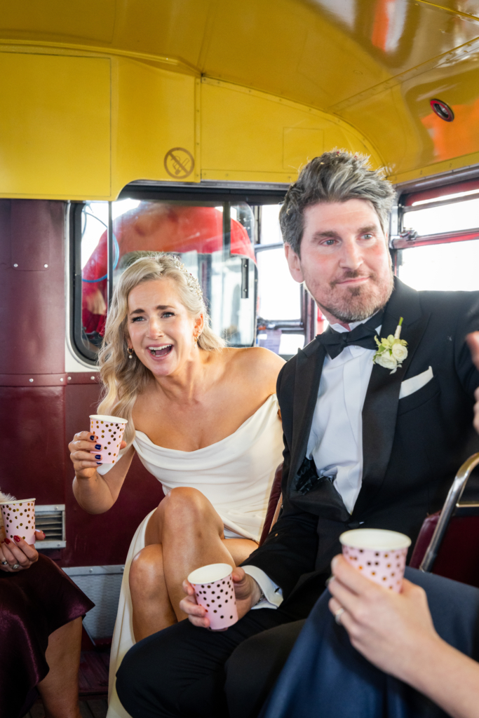 We travelled from Chelsea to the Mandarin Oriental on a red London bus from Routemaster Hire, which was such a fun way to move everyone through the city together.