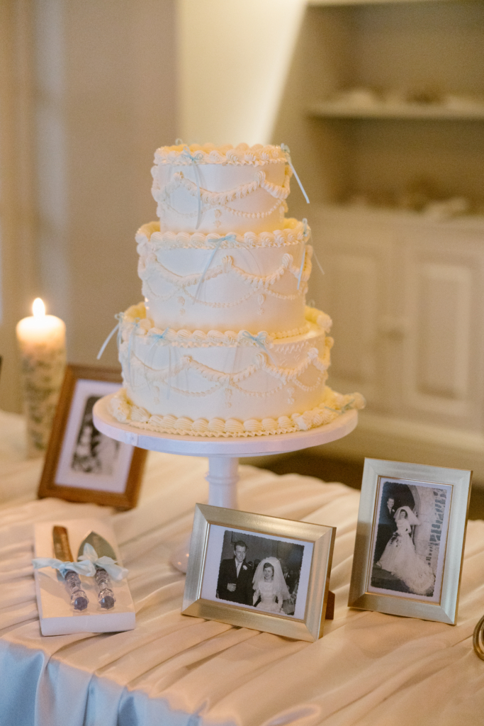 Our wedding breakfast began with lightly smoked trout tartare, followed by sliced sirloin with potato cake and finished with a Valrhona chocolate cremeux. We then cut into our three tier vintage piped cake filled with vanilla sponge and strawberry champagne jam.