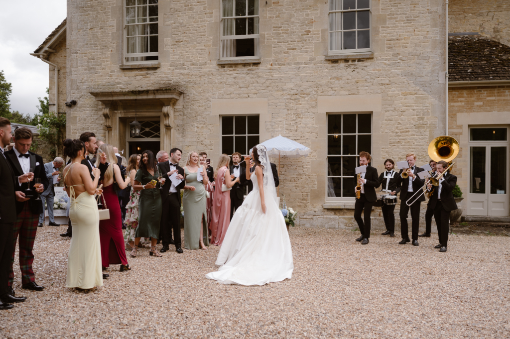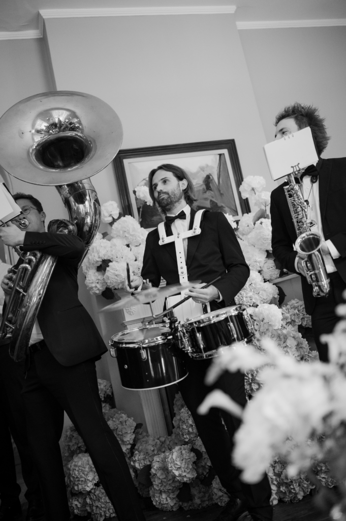 Music was pivotal to the entire day. We had a live violinist during the ceremony, with my walk down the aisle to Can’t Help Falling in Love by Elvis Presley. After the ceremony, our guests were surprised by a walking brass band who played us out and continued through cocktail hour, performing some of our favourite Elvis songs and ABBA classics.