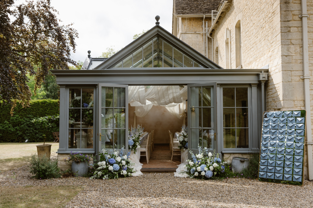 We discovered The Rectory through The Telegraph’s list of top UK hotels and I was instantly drawn to the outdoor pool. That detail became central to our English garden escape vision. When we visited, everything just clicked. We stayed for the evening, enjoyed the incredible food by the chef and even took a dip in the pool. It felt relaxed, special and intimate, and the glasshouse space was the perfect setting to host our 65 guests for both the ceremony and wedding breakfast.