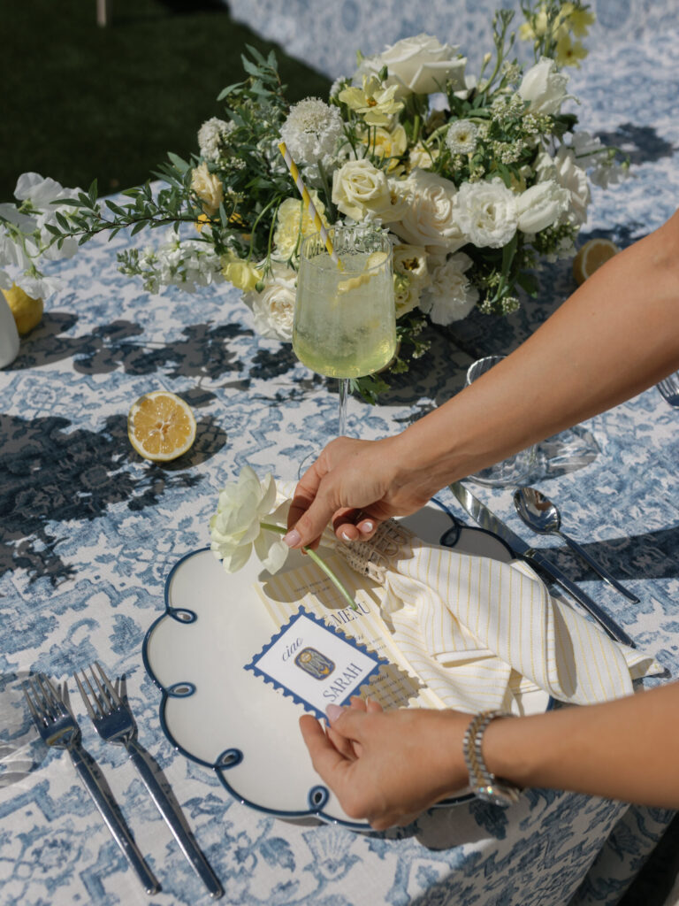 Even though our wedding will take place in Italy, I wanted to create a moment that brought that same feeling closer to home for our wider circle. We hosted it at a private residence in Phoenix to create an intimate experience for family and friends. I wanted this to feel like we were transported to Amalfi for the afternoon – elevated yet effortless, thoughtful but not overdone. Just a really beautiful day with the people I love most.