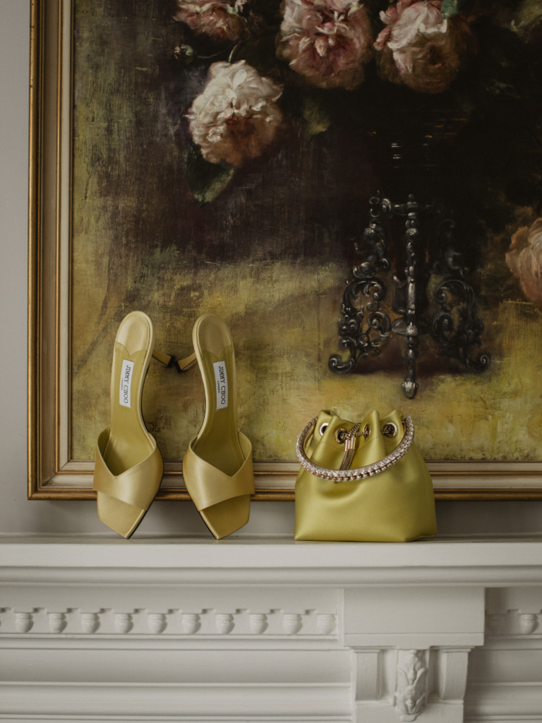 My shoes were Jimmy Choo. I adored the experience of going into their store and trying on all of their beautiful styles. I toyed with a bit more glitz or a bit of drama but I wanted something that felt me. I chose a pair of pale yellow silk square toe mules that matched my ring and I know I will wear for years to come.