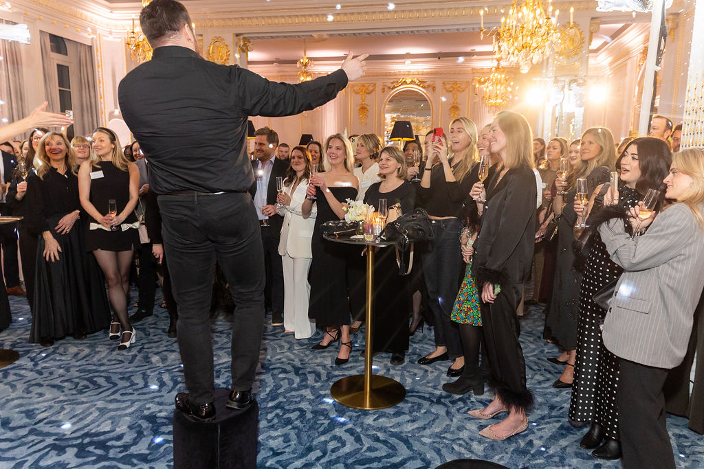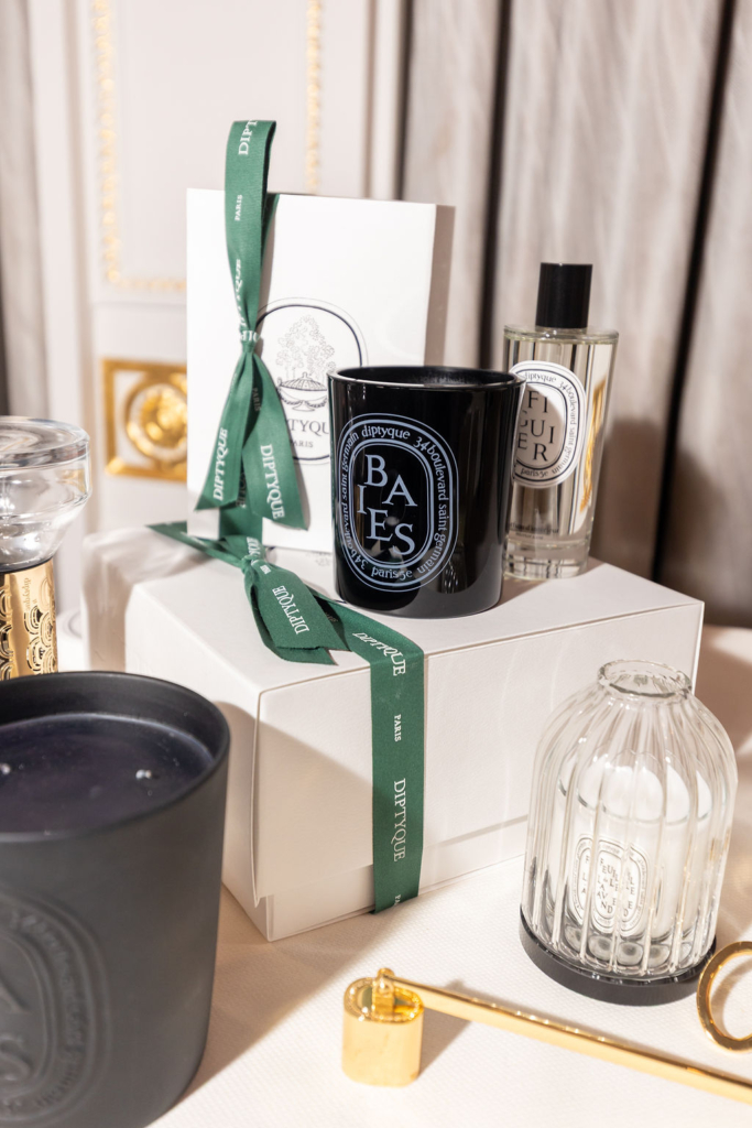 The ballroom itself was softly scented with Diptyque, creating an immediate sense of atmosphere from the moment guests arrived. Notes of Figuier, Geranium Rosa and Genévrier drifted through the space, layering the evening with something quietly transportive and unmistakably Parisian.