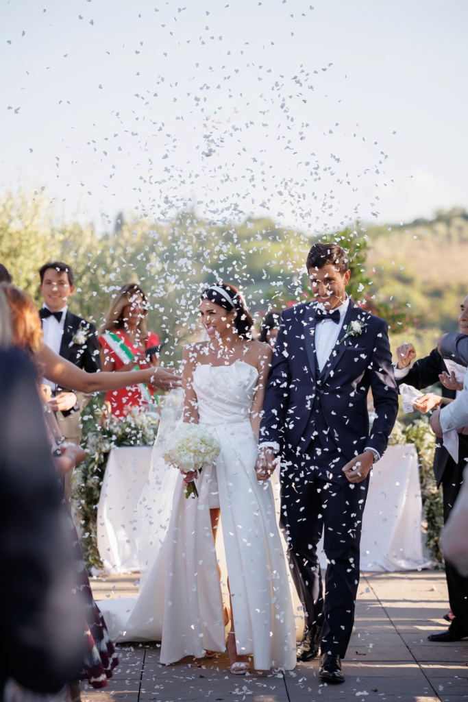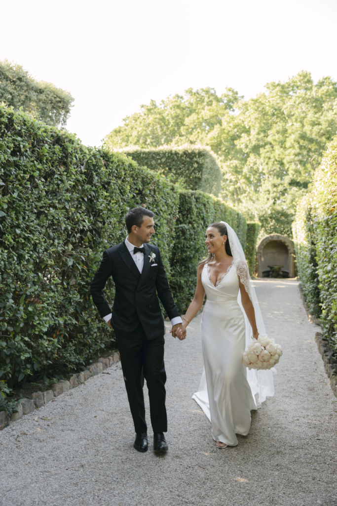 “Trust in the unexpected. Three days before our wedding, thunderstorms were forecasted. Determined to shift fate, we followed an old Italian legend and delivered sixty eggs to the nuns at a monastery. Miraculously, the skies cleared, and just as our first dance began, the gentlest raindrops fell -cinematic perfection before the heavens opened and we danced in the rain, atop the tables, with thunder and lightning illuminating the sky.”