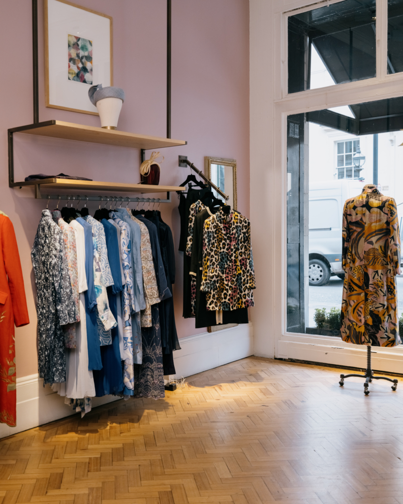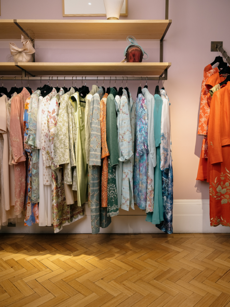 Favourbrook’s St James’s boutique space encourages you to slow down. To touch the fabrics, hold a sleeve to the light, try a coat you hadn’t considered on the advice of the seasoned team. There are racks of jewel-toned silks and soft pastels, Austrian linens and Como silks, each with a fluidity that you only fully appreciate when you try the garment for yourself.