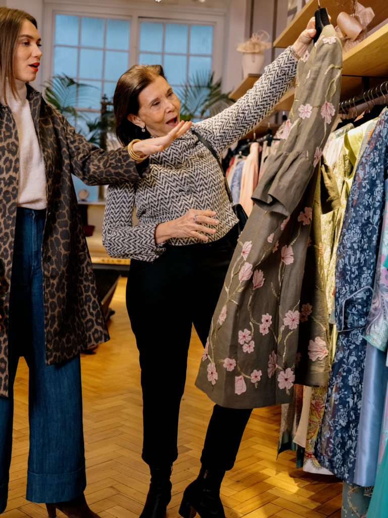 For my mother, the afternoon became an exercise in discovery: sampling silhouettes, experimenting with layering, playing with styling. The result was a shortlist of looks, each embodying the glamour and comfort she wants for the day.