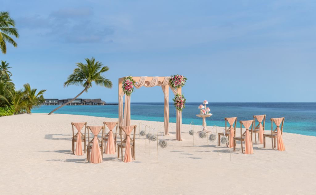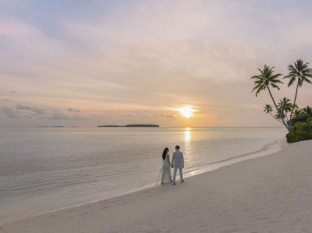 A private island paradise with architecture as striking as its lagoon views, the St. Regis Maldives Vommuli Resort is made for couples with a taste for the extraordinary. Exchange vows on an overwater deck surrounded by the Indian Ocean, then celebrate with sunset cocktails at the iconic Whale Bar. Days are spent snorkelling, sailing or indulging at the Iridium Spa, while evenings bring Champagne rituals and barefoot dancing beneath the stars. Every detail whispers luxury and every moment feels like the beginning of a beautiful story.