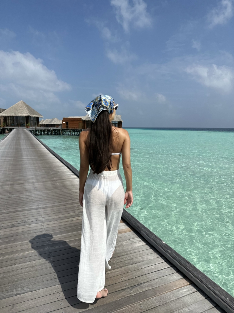 The wild contrast of colours and Maldivian magic starts as soon as soon as you board the Four Seasons’s very own Princess Yacht from the airport (Malé) jetty. The excitement builds and stresses melt away as you dock into Kuda Huraa, one of the Maldives’ ‘originals’ that has stood the test of time. The reception area beckons like a lantern amid a calming and utterly surreal scape of smooth blue water, white sand and wide open sky with colourful lanterns and a mosaic tiled floor. Here honeymooners meet their dedicated guest experience manager who tailors itineraries to a couple’s every whim and adjusts this throughout their stay. Villas are situated on a sandy lane that snakes through the resort, bordered by colourful native flowers and soaring coconut palms. Two pools mirror the other-worldly blues of the Indian Ocean, blending seamlessly into the horizon with a swim up bar in one of them. Meanwhile, an affable team wearing traditional dress – natural linen finished with gold embroidery – have a nothing-is-too-much attitude that renders any stay a breeze. Come evening, expect to take part in crab racing (a favourite local game) and sip specialty cocktails as the sun casts its pink, coral spell on the horizon. Four Seasons Kuda Huraa even have their own time zone, an hour ahead of Malé to ensure those melting sunsets are never missed.