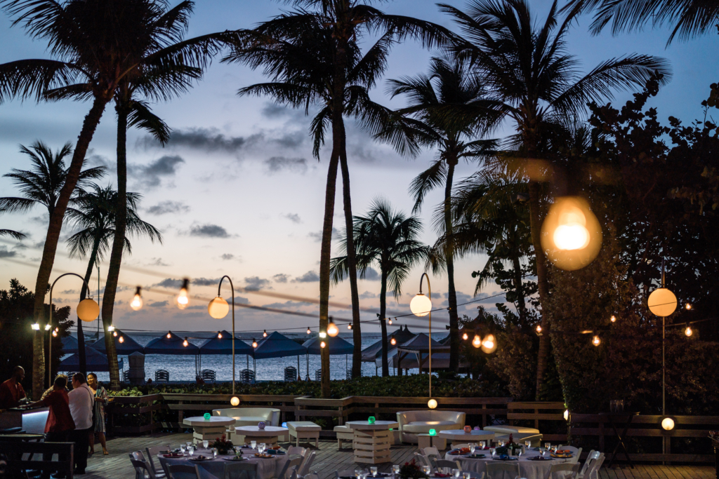 Many receptions unfold outdoors, with long tables arranged beneath strings of lights and the sea providing an endless backdrop. Cocktail hours often begin with rum-based drinks and trays of fresh seafood, while dinner menus combine Caribbean ingredients with international flavours.