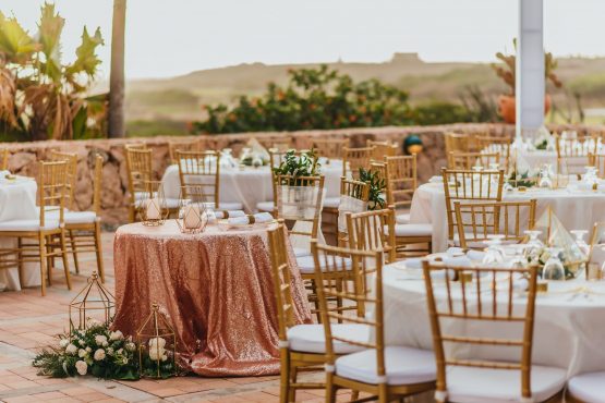For something more dramatic, Tierra del Sol Golf Club offers one of Aruba’s most striking wedding venues. The club sits perched above the sea along the island’s northern coastline, and features rugged cliffs and panoramic ocean views, while its manicured fairways intertwine with Aruba’s natural landscape. This setting allows for open-air ceremonies surrounded by desert flora, Atlantic breezes, and the iconic backdrop of the California Lighthouse, making each event visually unique.