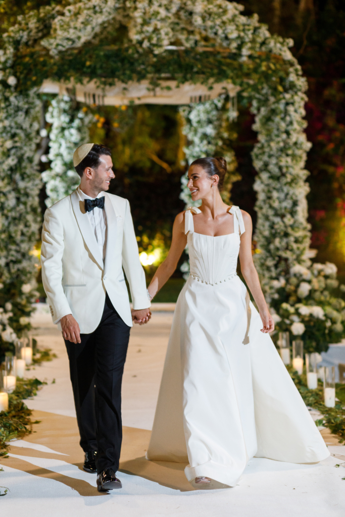 When Hannah Nathan, founder of luxury bridal jewellery studio Dove House, married Elliott Dagul in June 2022, it wasn’t just a wedding – it was a celebration of style, identity, and impeccable taste. Set across three dazzling days abroad, the couple welcomed 200 guests to a series of unforgettable events: a beachside welcome party, a white-themed courtyard soirée, and a ceremony surrounded by lush greenery in a serene nature reserve.