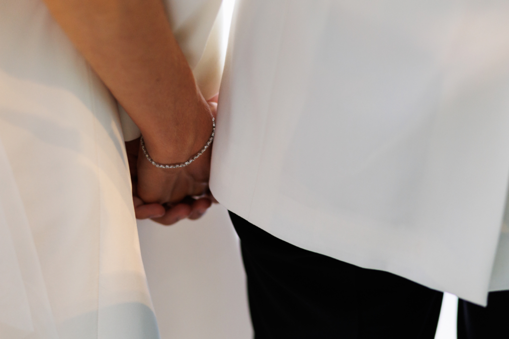 As someone who’s always been drawn to trousers and more structured, androgynous styles, I suspected finding a wedding dress would be challenging. I kept putting off trying anything on because I hadn’t seen a dress that truly felt like me. I started questioning whether I was somehow doing it all wrong – maybe I just wasn’t the kind of girl who dreamed of looking like a princess.