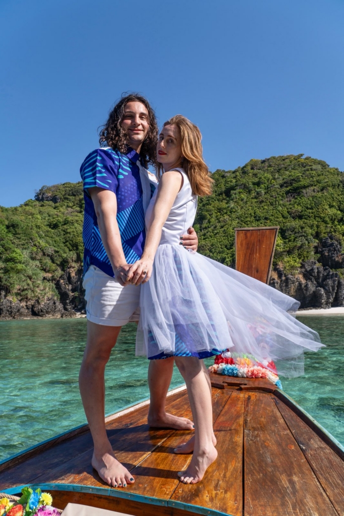 I got gifted the outfits from a wonderful friend and talented designer in Vanuatu. Her name is Gigi. As soon as I got them I was like wow these will be the perfect engagement outfits. I truly feel like a tropical princess wearing the dress. And the colors ended up perfectly matching the boat tour Tariq planned!
