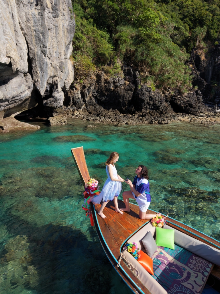 We are not only lovers, we are best friends. So we share every right!. Including wanting to get engaged. We have been talking about it for a while but thought the two year mark was a good time for us. I knew it was coming on this trip to Thailand. I wanted to have my nails done, a fresh shave, specific jewelry etc. Specific outfits and ready for the special occasion. When we arrived at Phi Phi island he started glowing. He said “isn’t this a special place” then I knew it would happen there. Knowing for me made it more enjoyable. I could share in the excitement and feel secure in the happenings.