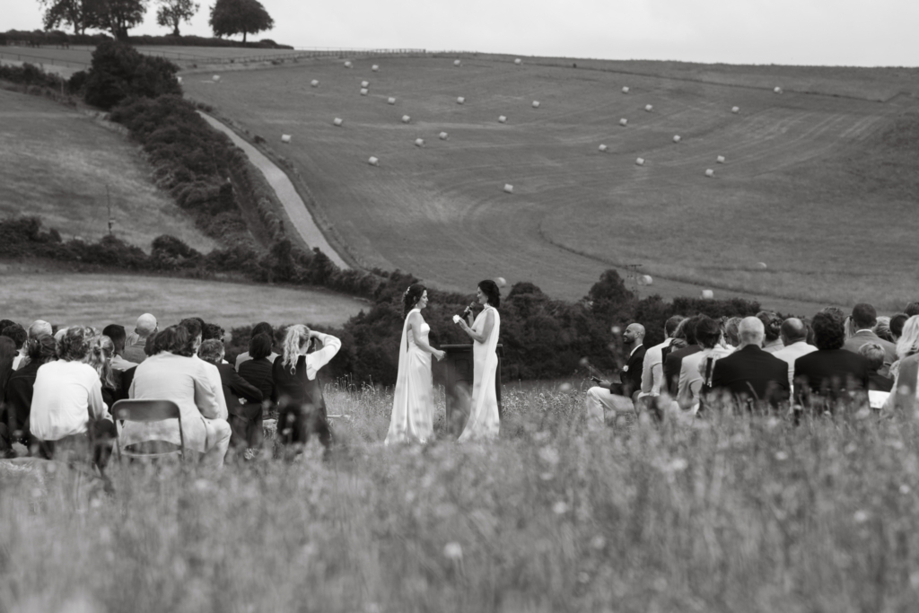 Antonia and Georgie got married in a Hampshire wildflower meadow – Georgie’s family home – with hay bales on the horizon. More country wedding inspiration here.
