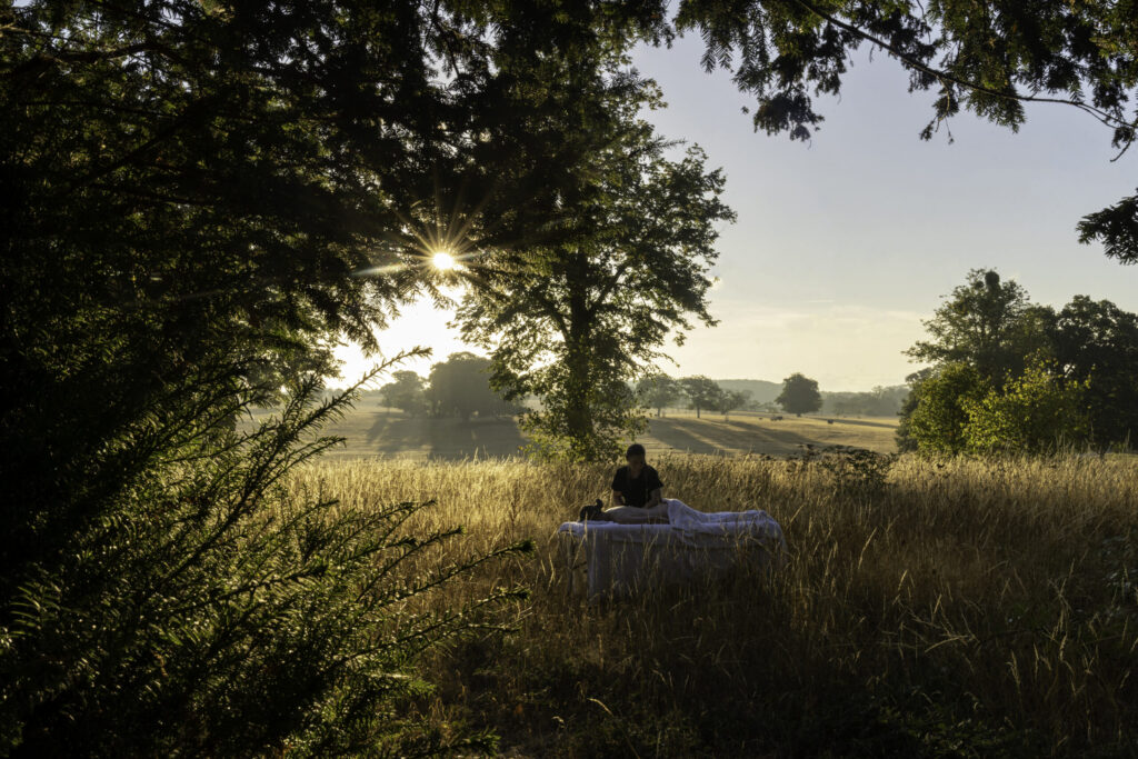Benham Park, a Grade II listed Georgian wedding venue set in a bucolic backdrop of lakes and in-the-round groomed parkland. There is privacy, there is calm, and the house approach to wellbeing at weddings reflects that: multi-day weddings only, flexible arrival and departure times, an explicit mandate to reduce pace and kick back. The fully equipped gym and solarium can be augmented with sound baths, reiki healing (a Japanese energy-healing technique that promotes relaxation and stress reduction through hand movements), massages, meditation, and breathwork, with a roster of wellness instructors brought in by an in-the-know team.