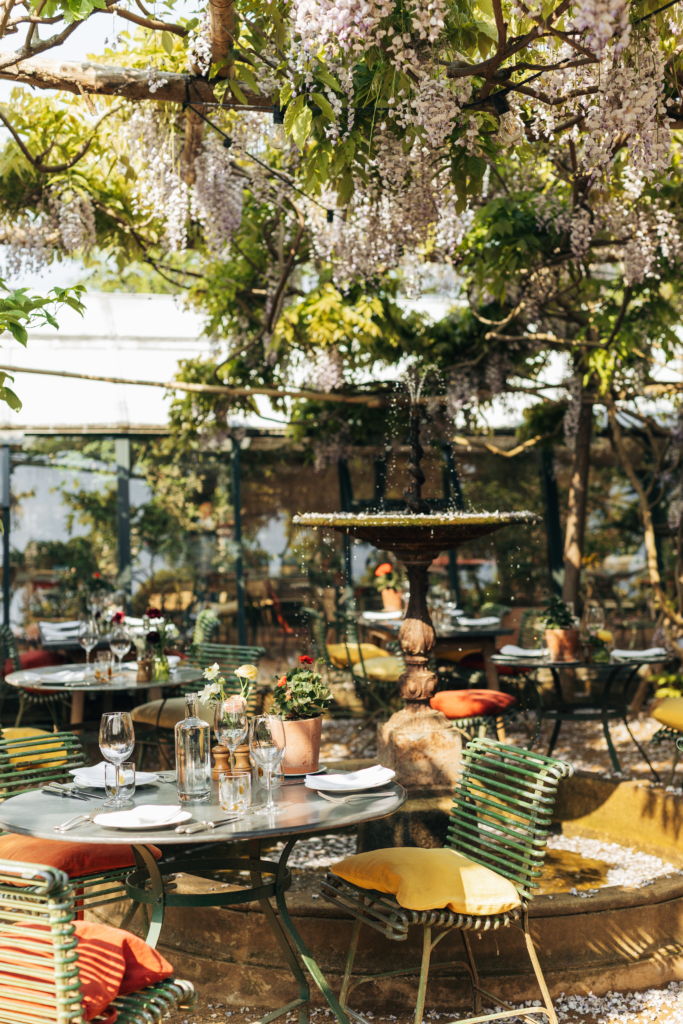 Dining at Petersham Nurseries celebrates seasonal and locally sourced produce, often from the nearby kitchen garden. The culinary approach is simple, fresh and beautifully executed; Michelin Green chefs bring Italian-inspired menus. Table settings are styled with terracotta pots, handpicked garden stems and soft linens, creating an atmosphere that is relaxed but refined.