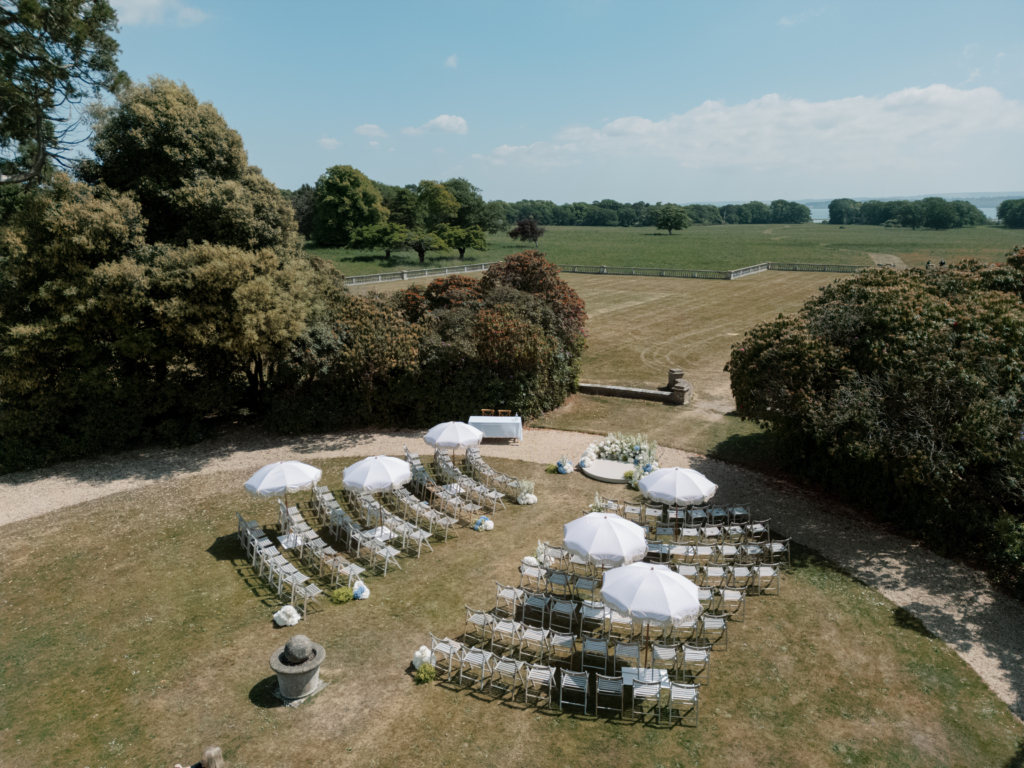 Grand vistas aside, it’s important that guests feel at home here. And once couples set foot in the house itself, that breezy feel of waltzing into your very own country pile becomes evident and makes the opulence of crystal chandeliers, four-posters and endless architectural elegance feel entirely natural. You are here to have fun: stock the bridal suite’s drinks trolley with champagne or order local surf and turf for supper on the terrace overlooking the Solent. You won’t find too many rules here, and, from the plush velvet Chesterfields in the drawing room that invite guests to sink down and rest dancing feet to its dog-friendly welcome, Pylewell sets a tone of ease and comfort that’s simply not found in a staid hotel.