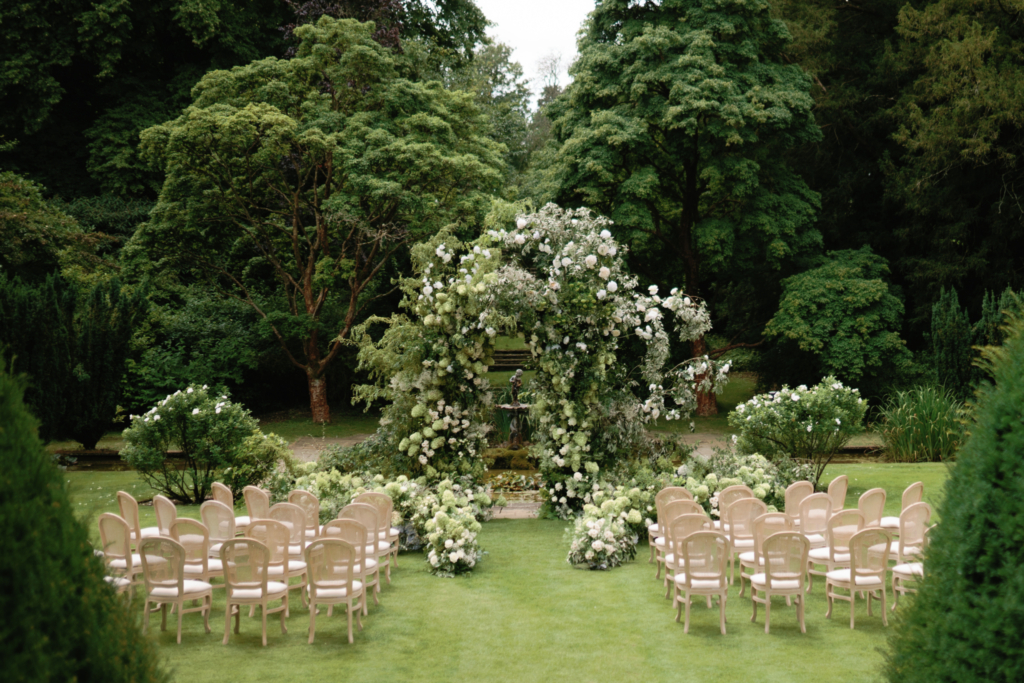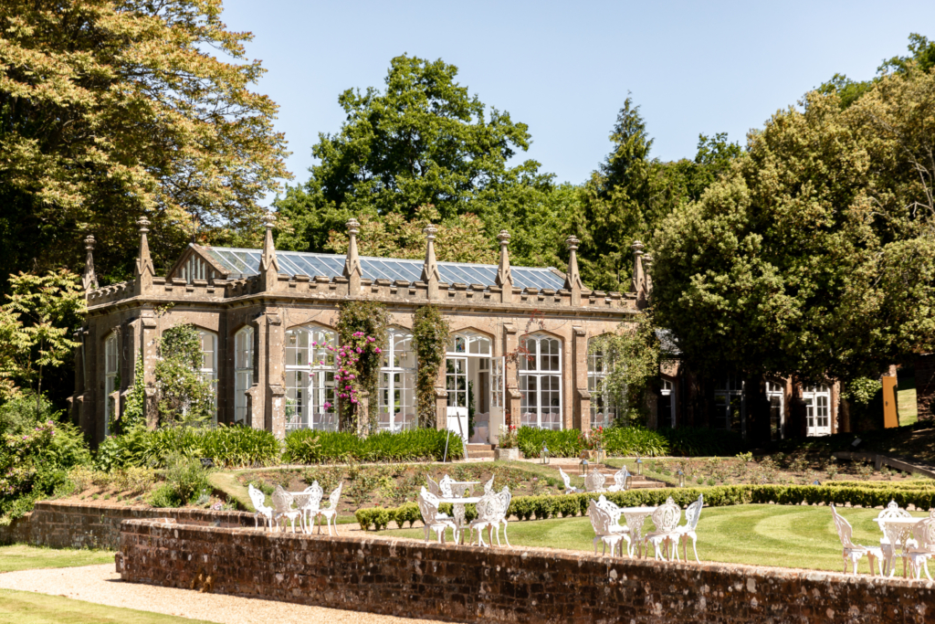 Set in a 450-acre rolling Cotswolds estate, Euridge Manor centres on its Tuscan-style terracotta Orangery, offering light-filled ceremony spaces surrounded by rose-clad pergolas, walled gardens and sweeping lawns.