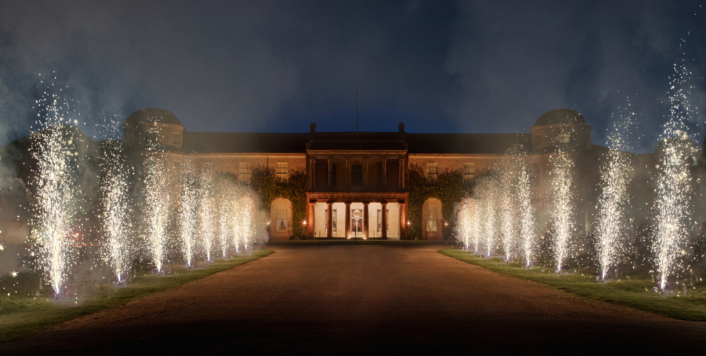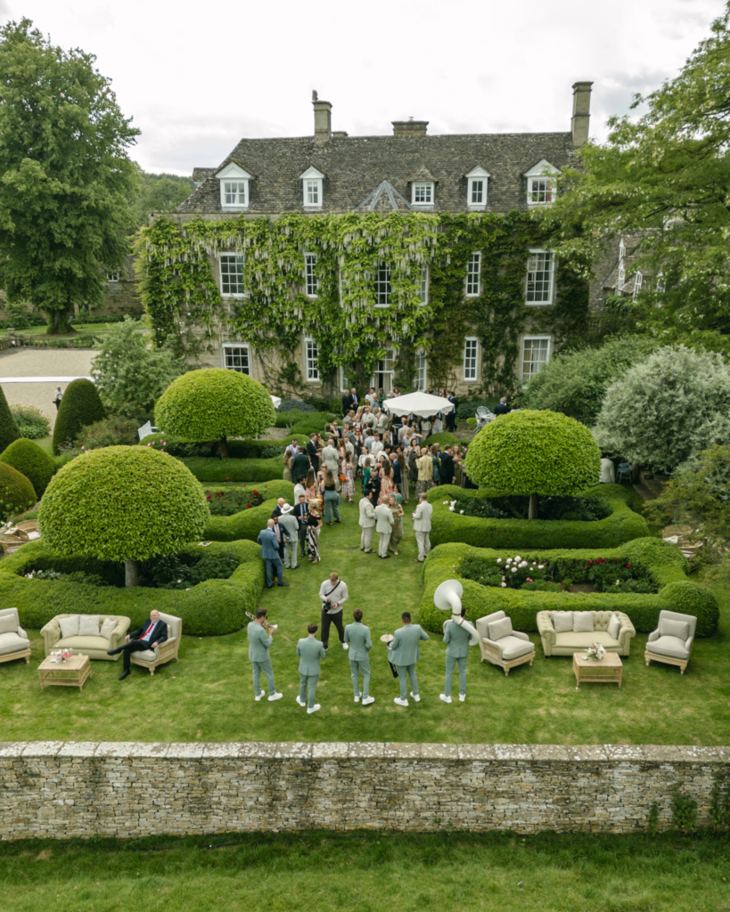 An Oxfordshire Jacobean estate with open lawns, formal gardens, and space for larger marquee-ready celebrations.