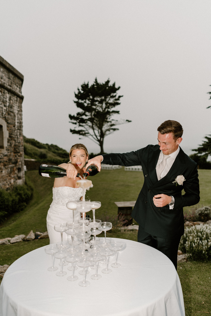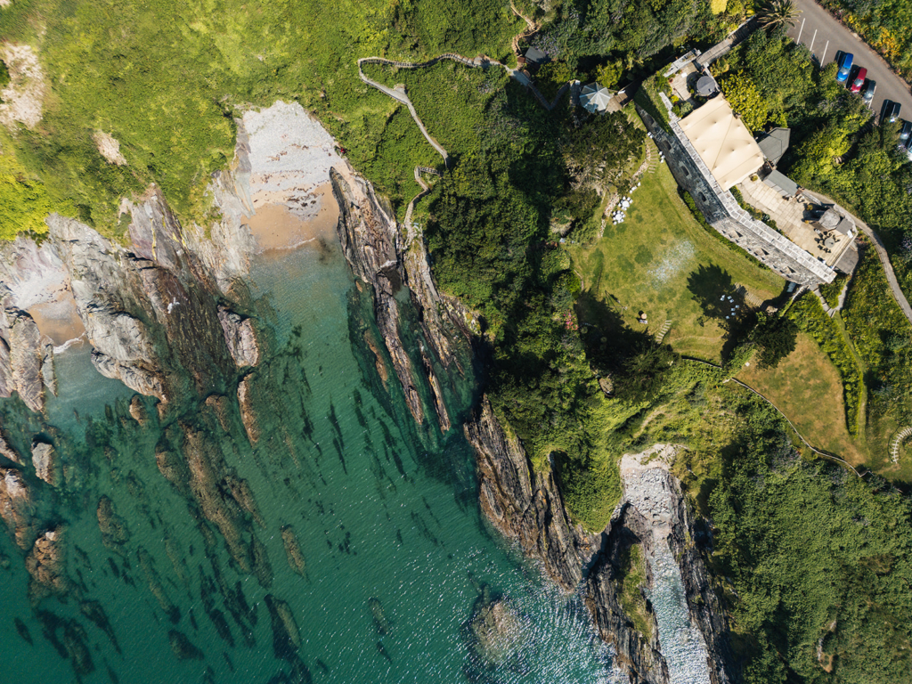 High above Whitsand Bay, Polhawn Fort offers total seclusion with clifftop lawns, gardens and a private beach. Ceremonies overlook the sea, with coastal walks and sunset gatherings defining the wedding weekend.