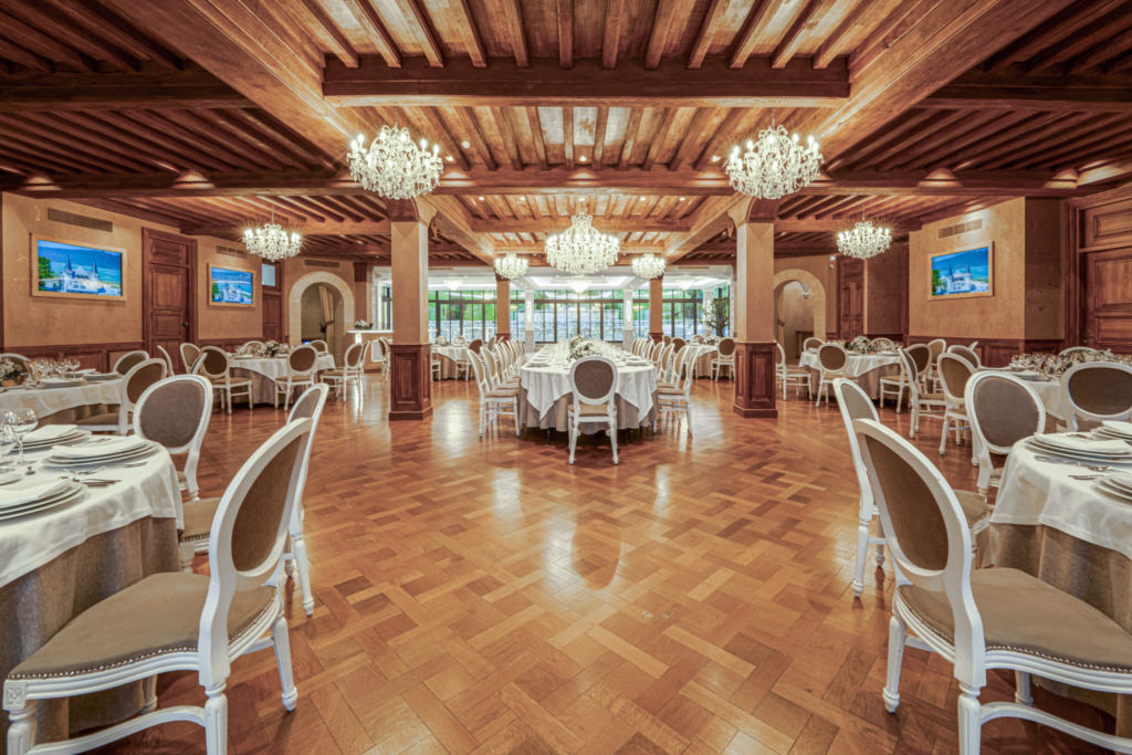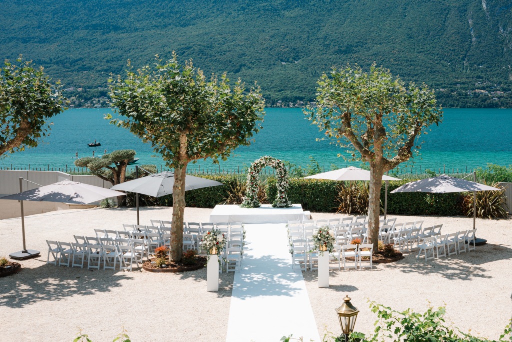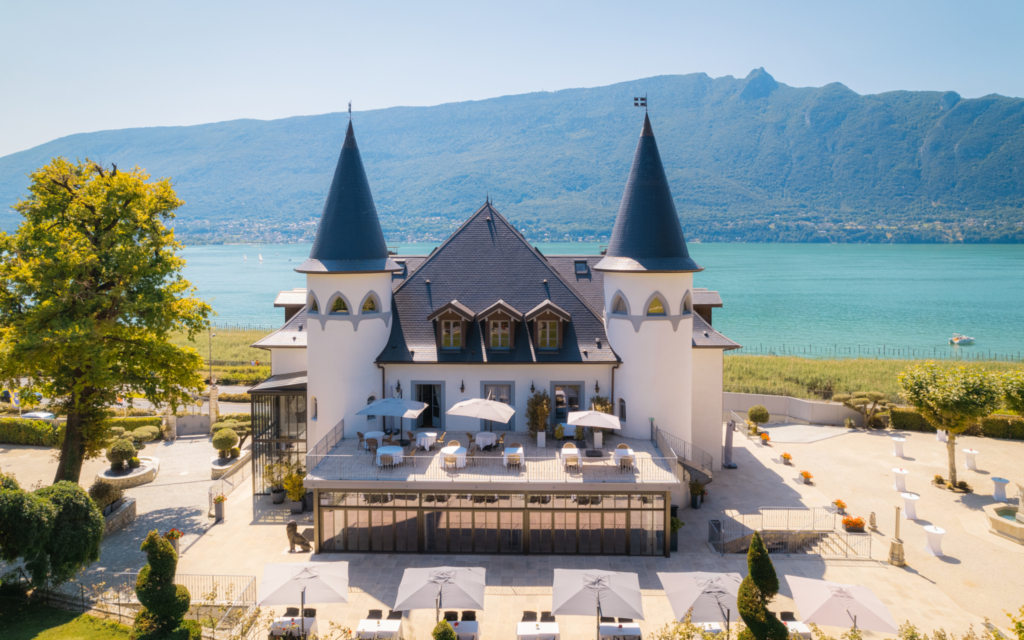 A Belle Époque château on Lake Bourget that combines Alpine elegance with gardens and lake-view reception spaces for up to 200 guests.