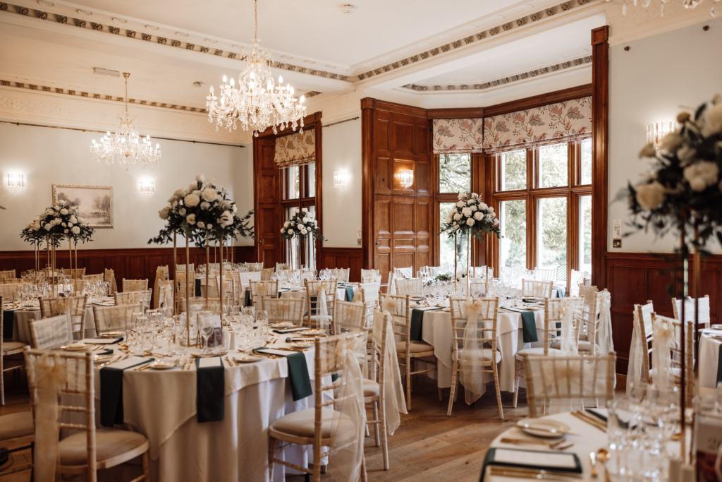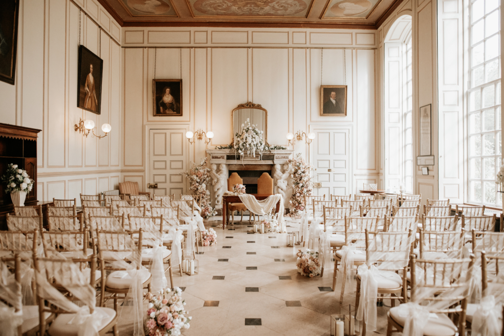 An Italianate manor in Warwickshire, Bourton Hall offers exclusive-use ceremonies across historic rooms, including the former chapel, Italian Room, and receptions hosted in the Grand Banqueting Hall.