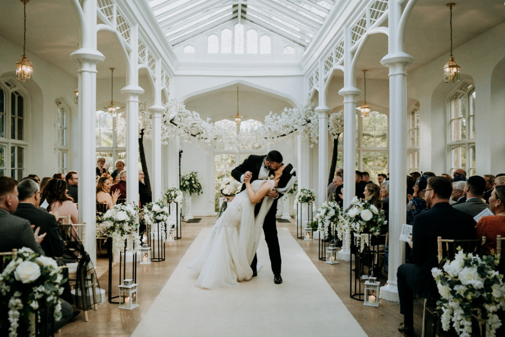 Set in eight acres of Warwickshire countryside, Ansty Hall offers outdoor garden ceremonies beneath a historic cedar tree as well as hybrid receptions in the Orangery that open onto sprawling lawns and patios.