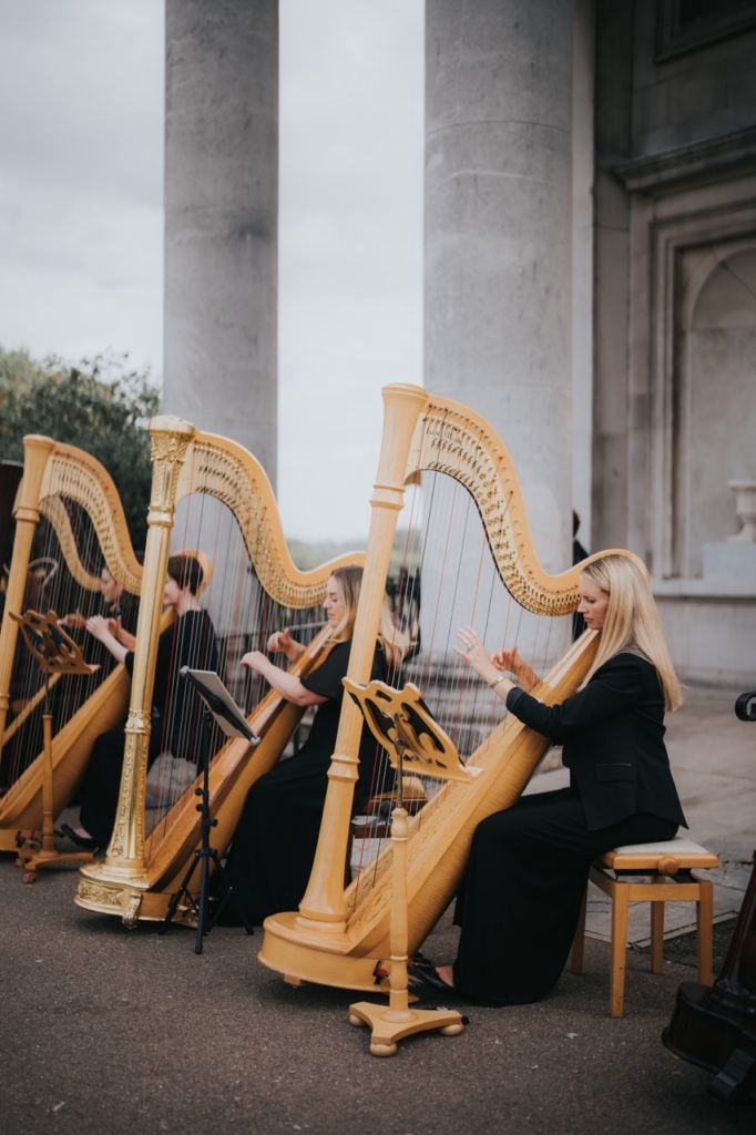 I think the last thing guests want is to be shouting over each other while they are trying to mingle if the music is too loud when they arrive for the ceremony or are trying to chat during reception drinks. You don’t need to worry about a sound battle if you opt for a harp as it’s a gentle instrument relative to most. If the space is large or outdoors though we do recommend amplification, but this is something The Harp Agency can discuss with you and advise accordingly. In terms of genre of music, that is entirely up to you: all of our musicians are experienced in playing Bach through to Beyoncé.